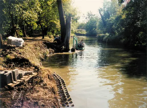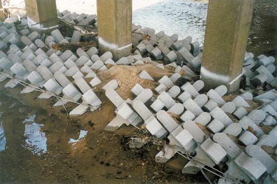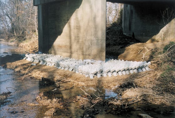 The A-Jacks system can dissipate energy and resist the erosive forces of flowing water, protecting channel boundaries from scour and erosion. Extensive laboratory research was performed on both model and full scale units in order to evaluate the hydraulic properties of the A-Jacks units. When the concrete armor units are installed along bridge abutments and downstream along the side of the water way, the toe is protected, the slope is stabilized, and the bridge is protected.