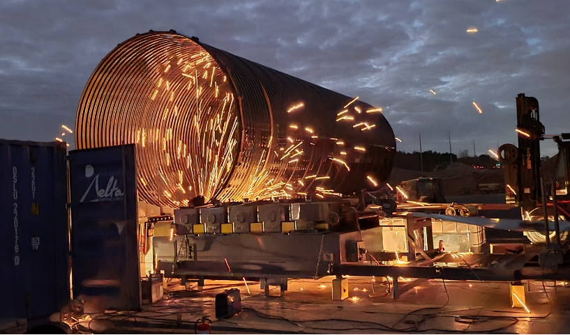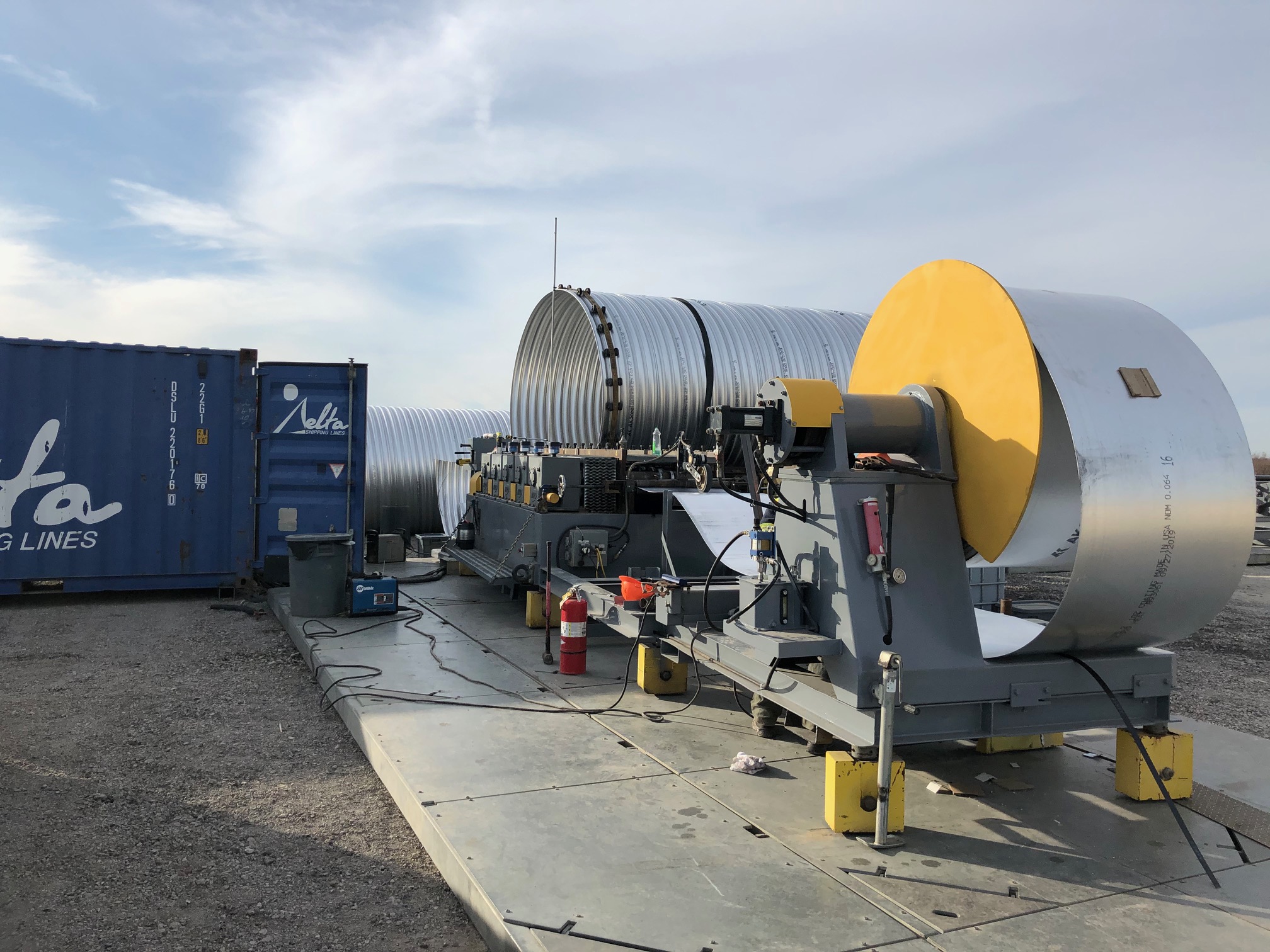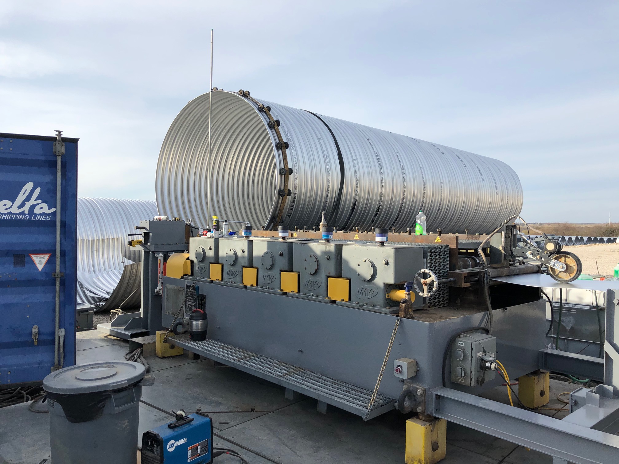 Contech Engineered Solutions’ MOBILE PIPE® mill can be delivered to remote site locations on trucks and assembled on-site for fast and cost effective on-site steel pipe manufacturing. The MOBILE PIPE mill is designed to be a self-supporting factory that can be quickly deployed and put into production. Once on-site, pipe manufacturing progresses quickly enough to allow pipe installation within four hours.