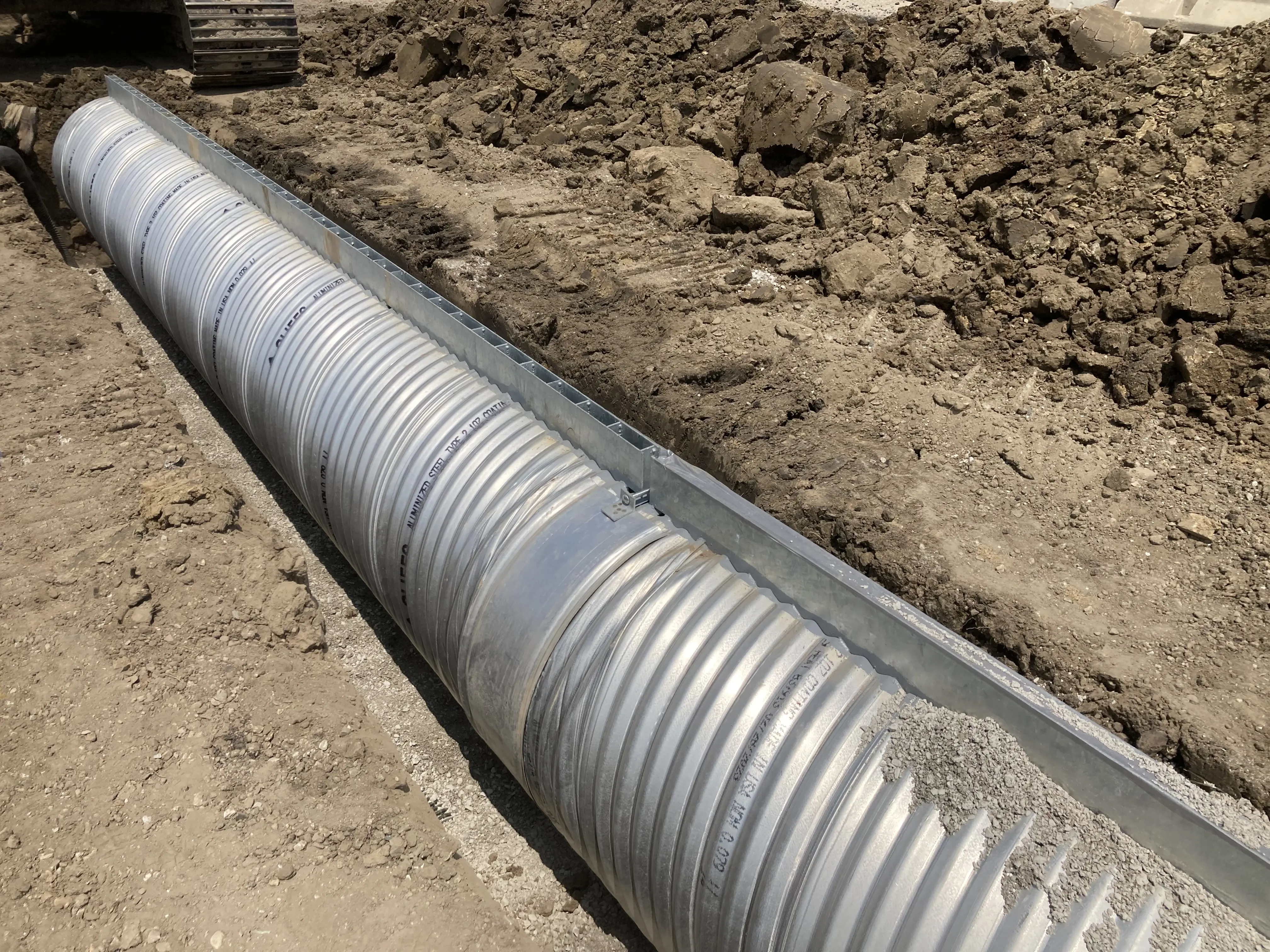 Slotted Drain™ is a unique pipe which removes sheet flow without multiple grades or water channeling devices.