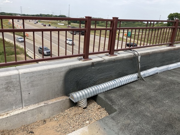 Bridges are often designed from zero to very minimal gradients, and designers must also mitigate the water from ponding and running off the ends of the bridge. Railroad bridges are constructed with ballast instead of pavement, and Contech Deck Drain is used to collect and transport water off of the bridge.