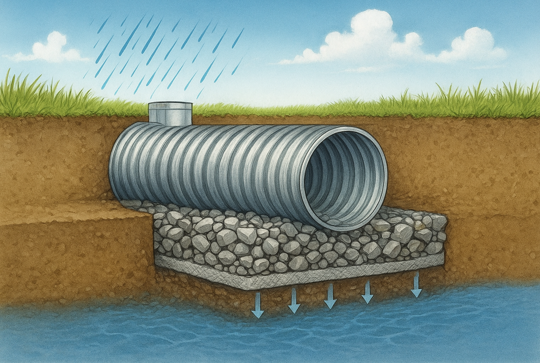 CMP-based infiltration systems offer an efficient way to manage stormwater by recharging groundwater underground, but proper design is essential for long-term performance. Key best practices include site-specific infiltration testing, using clean angular stone, geotextile wrapping, staying above the water table, and optimizing storage depth to maximize system effectiveness.